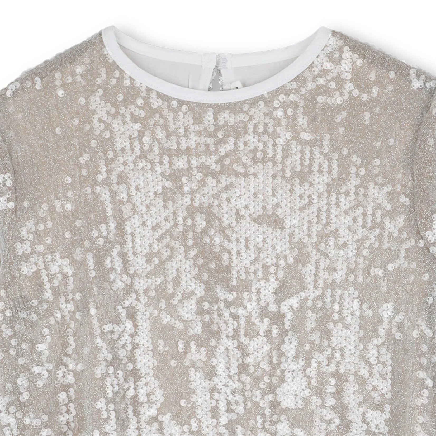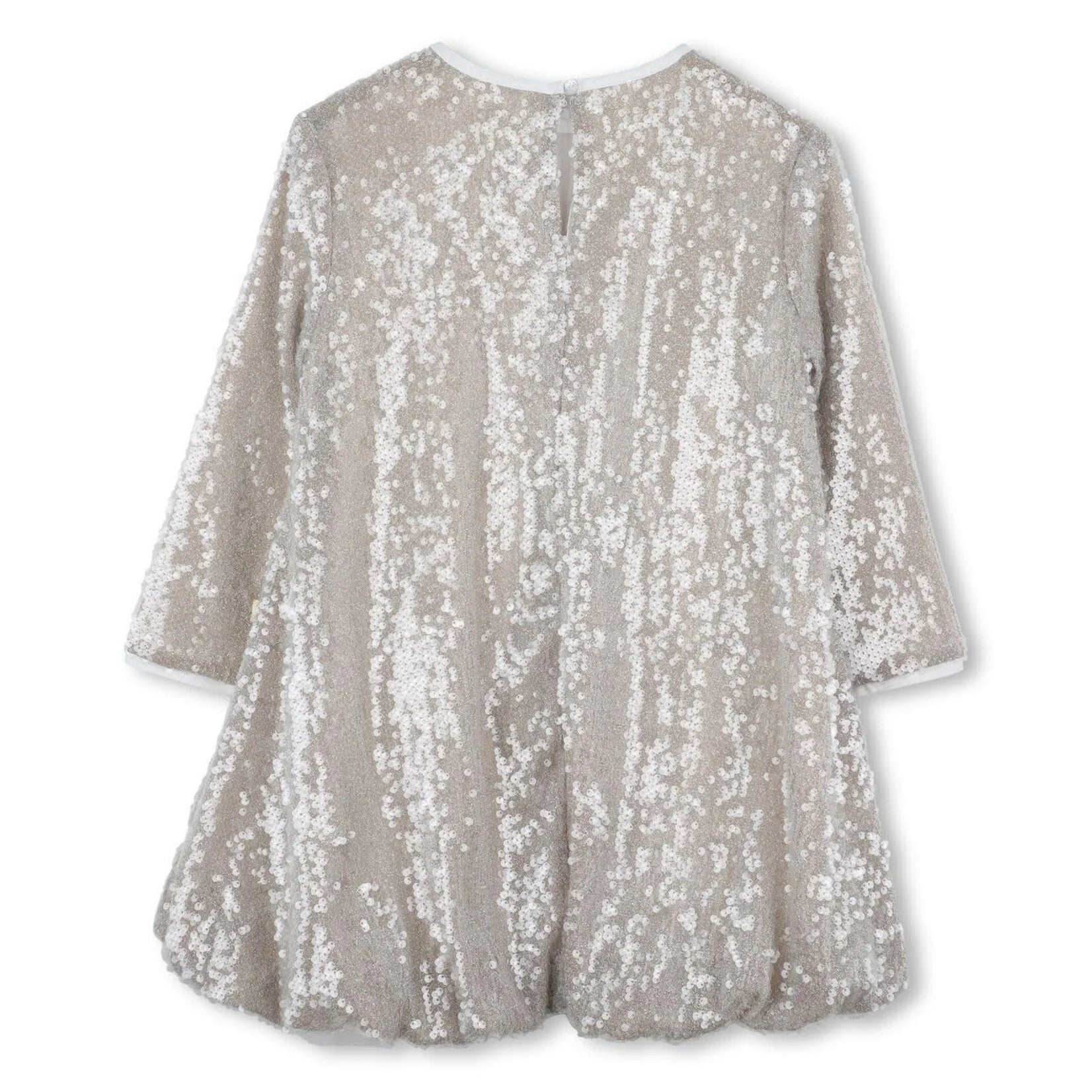 Introducing the stunning ceremony sequin dress from Billieblush, a must-have! Crafted from high-quality metallic fabric, this dress radiates elegance and charm. It features a unique light gold hue that captivates the eye with white tulle underneath. Designed for comfort and style, it’s perfect for special occasions or festive gatherings. Pair it with chic accessories for a complete look. Embrace the luxury of exquisite materials and intricate details that highlight the craftsmanship. Make every moment special with this one-of-a-kind piece, designed for the little fashionista.