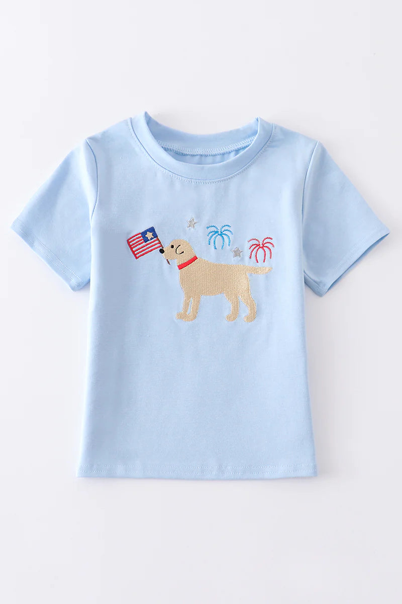Blue Patriotic Dog Embroidered Shirt