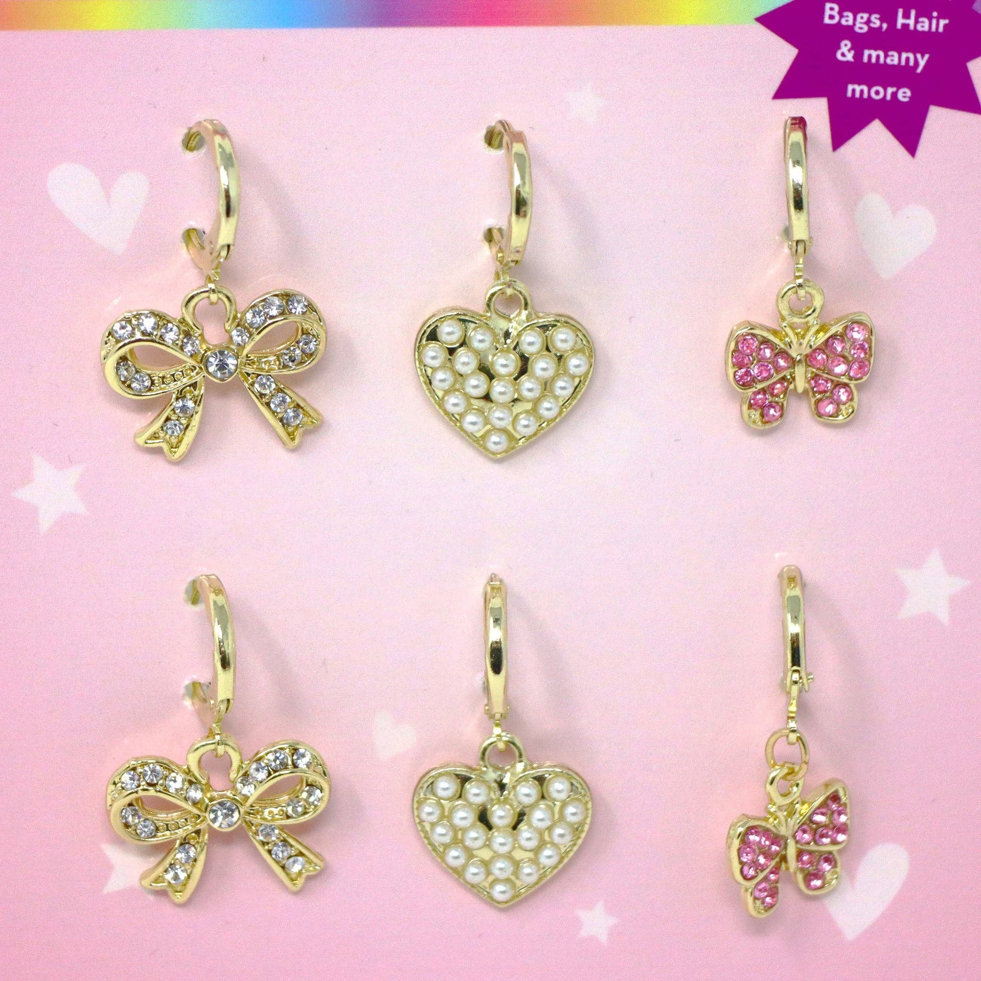 These Pink Poppy's Fairy Sparkle Charm Set features 6 gold plated, unique charms including hearts, butterflies, and bows. Designed to easily attach to your shoelaces, necklaces, bags, clothes or hair! You will be showcasing your individual style in seconds. Feature 2: