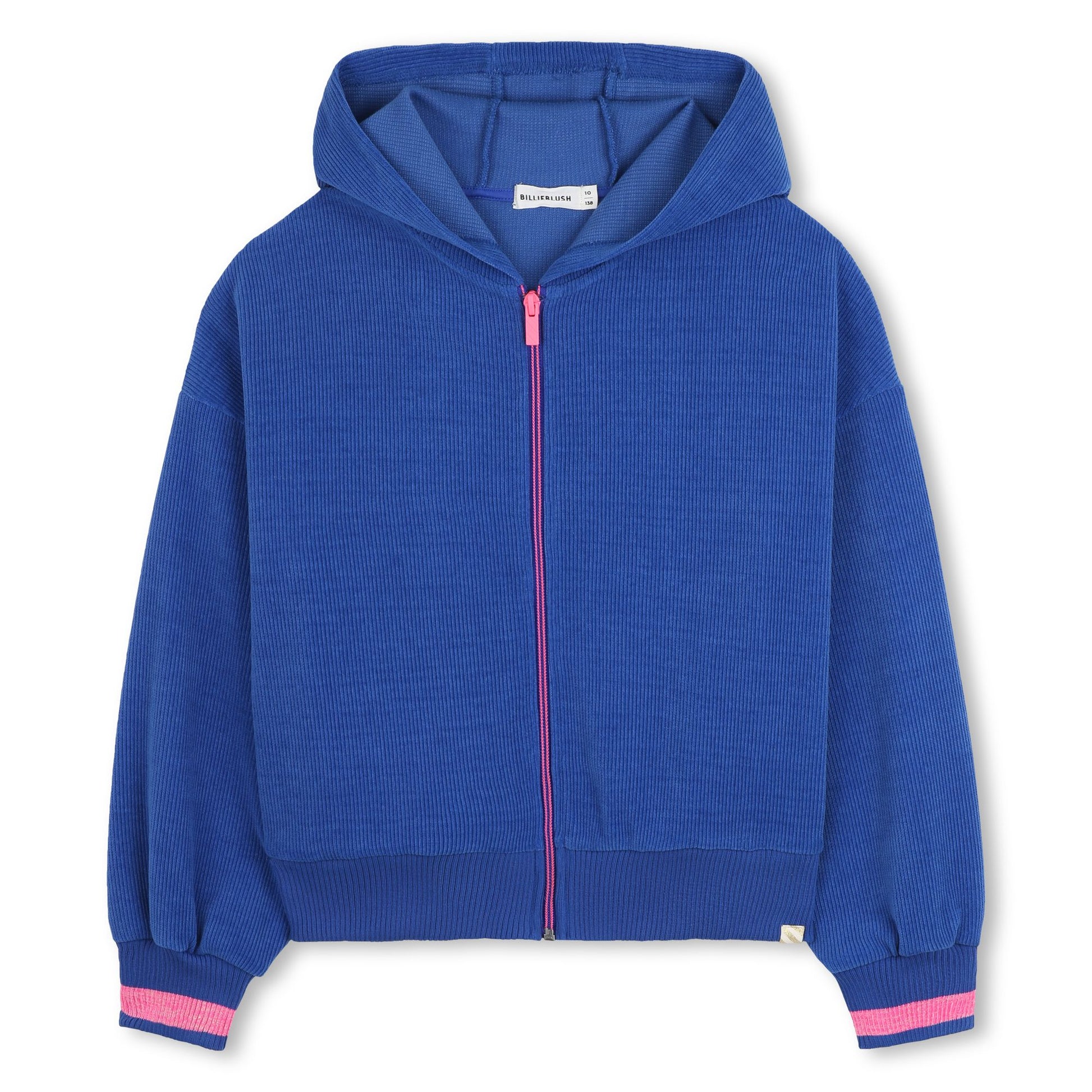 This Billieblush free hugs embroidered zip up sweatshirt features a hood, striped cuffs, elastic at the bottom, front zipper closure, exquisite embroidery on the back and a label. Ribbed and made of comfortable and high-quality fabric.