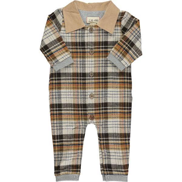 This gifford lumberjack plaid romper is 100% cotton and cute & neutral with buttons on the front and snaps for easy changing. He'll be handsome and ready for the fall in this comfy one piece.