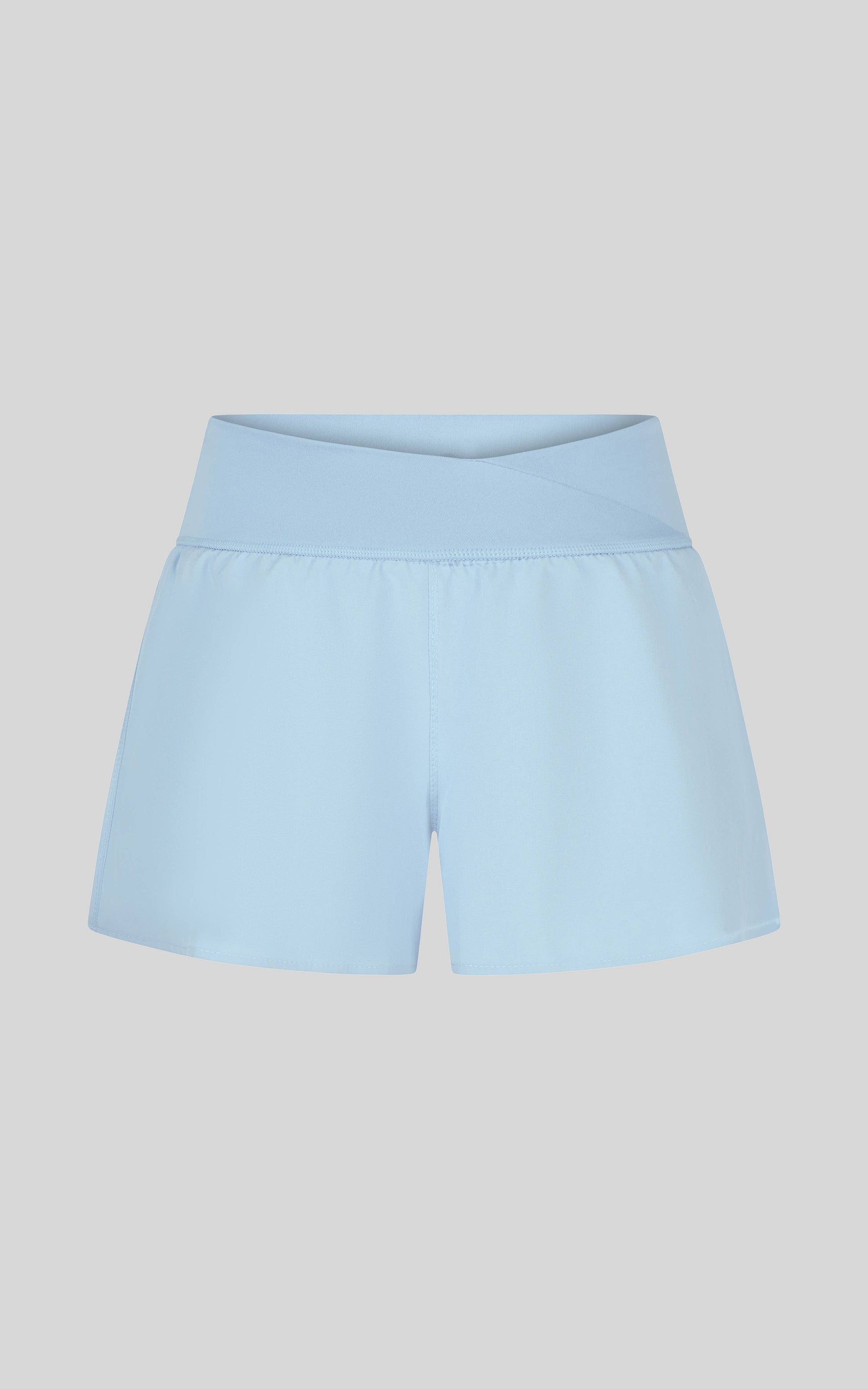 Girls lightstream crossover waistband hybrid short with attached inner pant. Inner shorts also have inside pocket - Machine Wash Cold - Lay flat to dry, no heat - 89% Polyester 11% Spandex