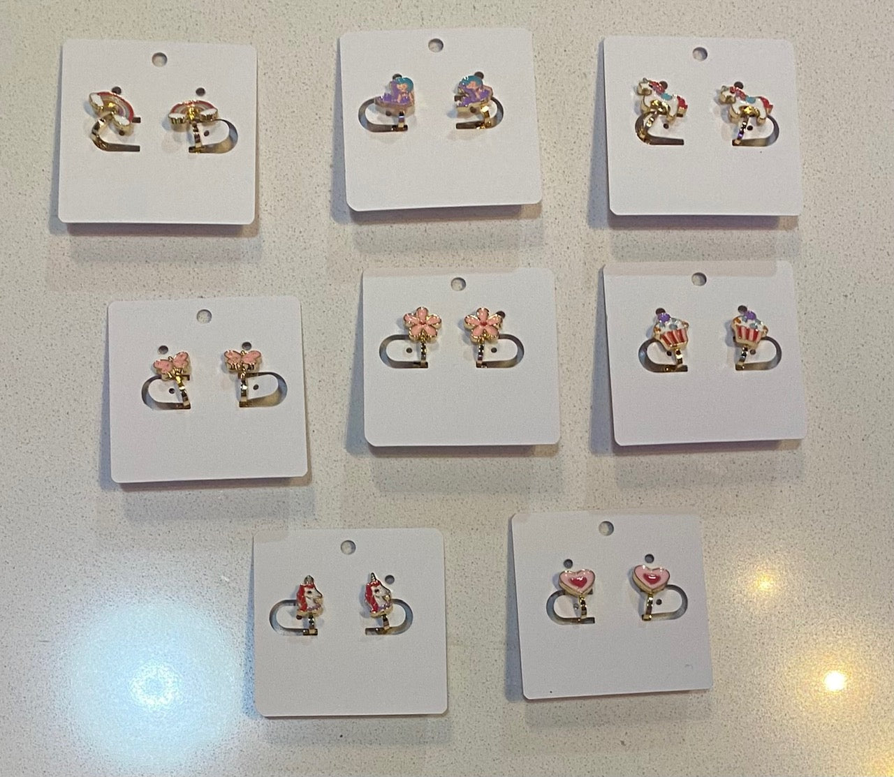 These gold clip on earrings come in assorted designs and feature secured rubber on the back to protect the ear and keep them on.