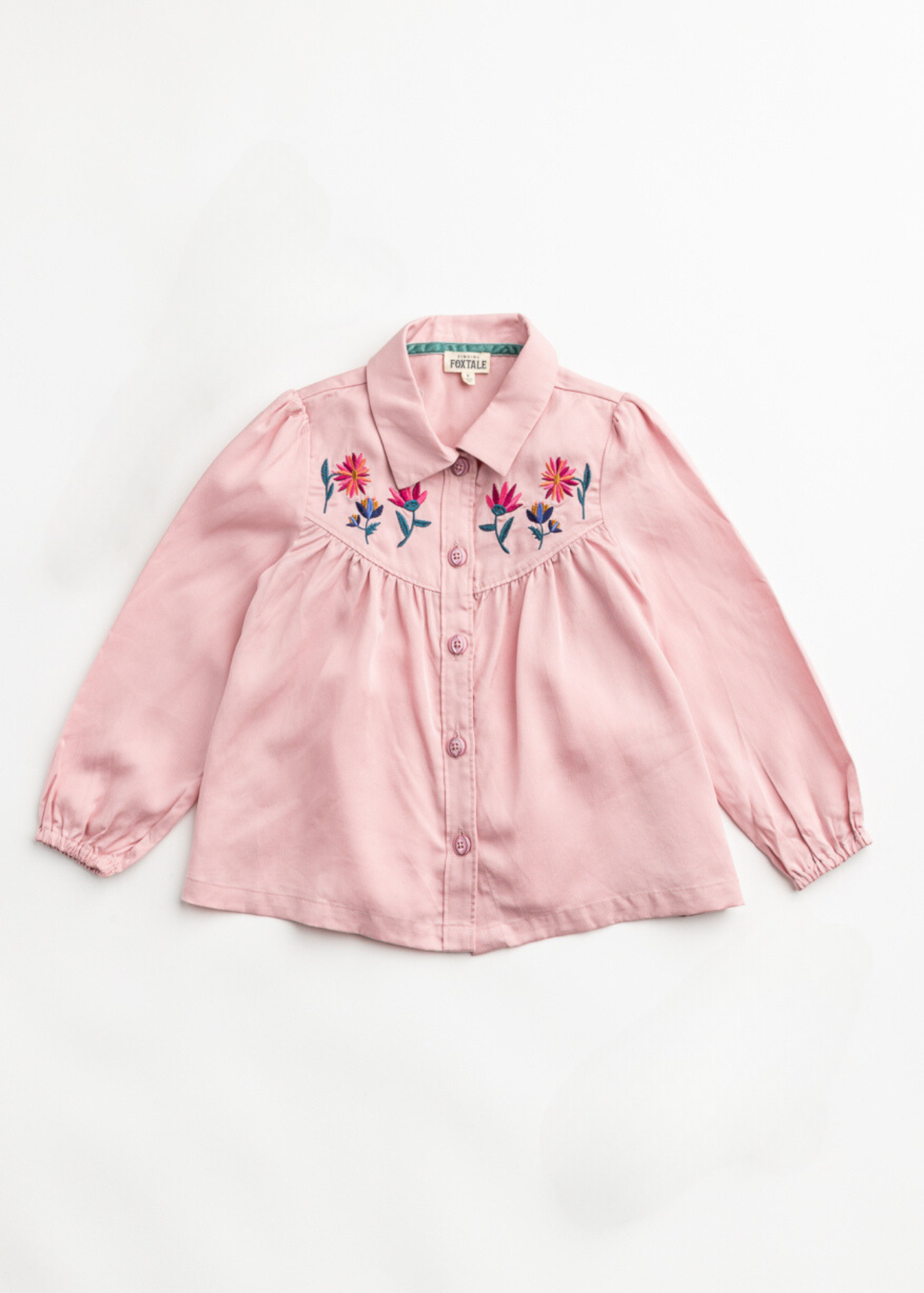 Take the flowy, buttoned-up Growing Garden Top as your sign to stop and smell the flowers. The smooth Tencel fabric is grounded in a soft pink shade, topped with twinkling buttons, and finished with a brilliantly bold embroidered bouquet on the bodice. This thoughtful style has a lined yoke, so you get all the darling details without discomfort.