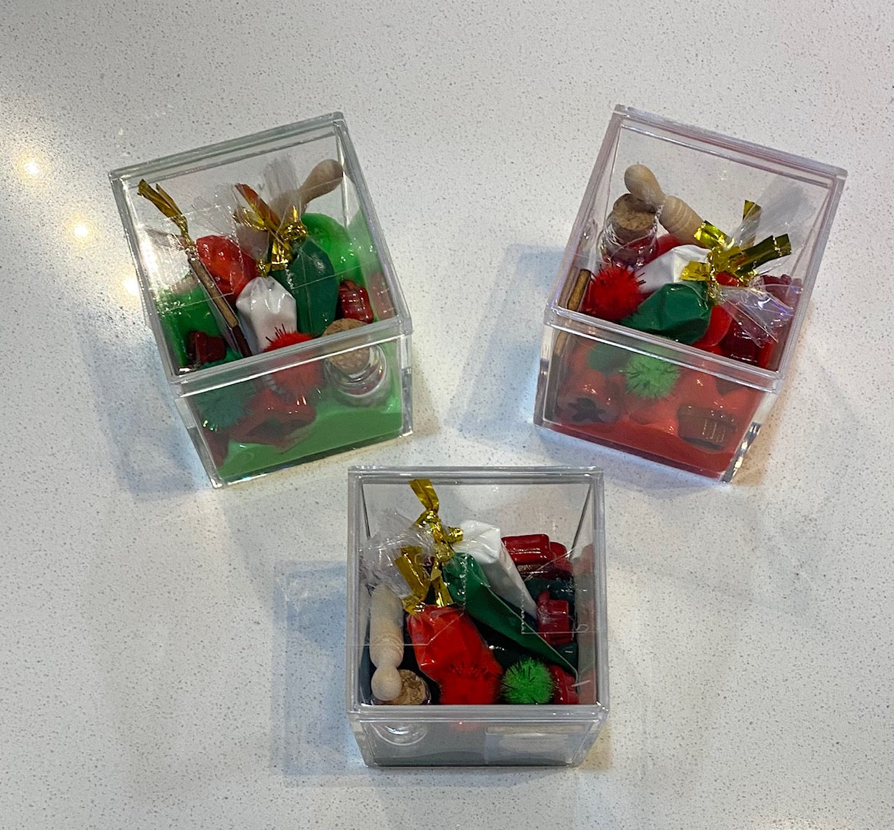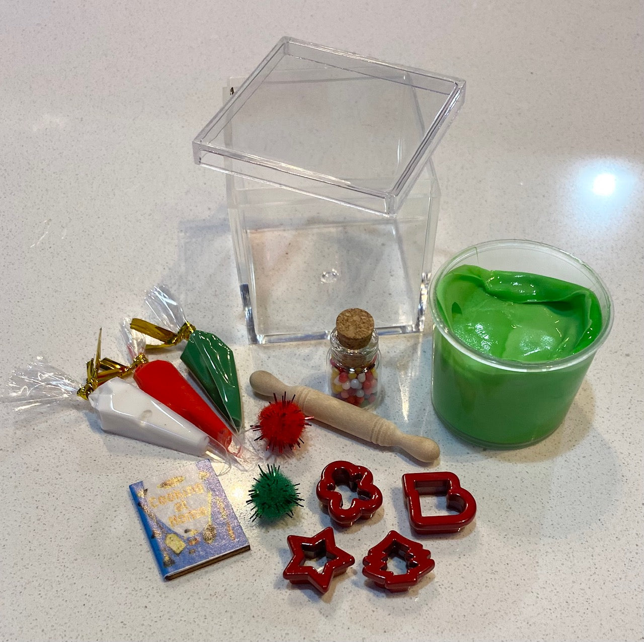 These sensory kits include an assortment of slime, holiday baking molds, rolling pin, icing bags and accessories to help your child explore their creativity! Hours of fun!