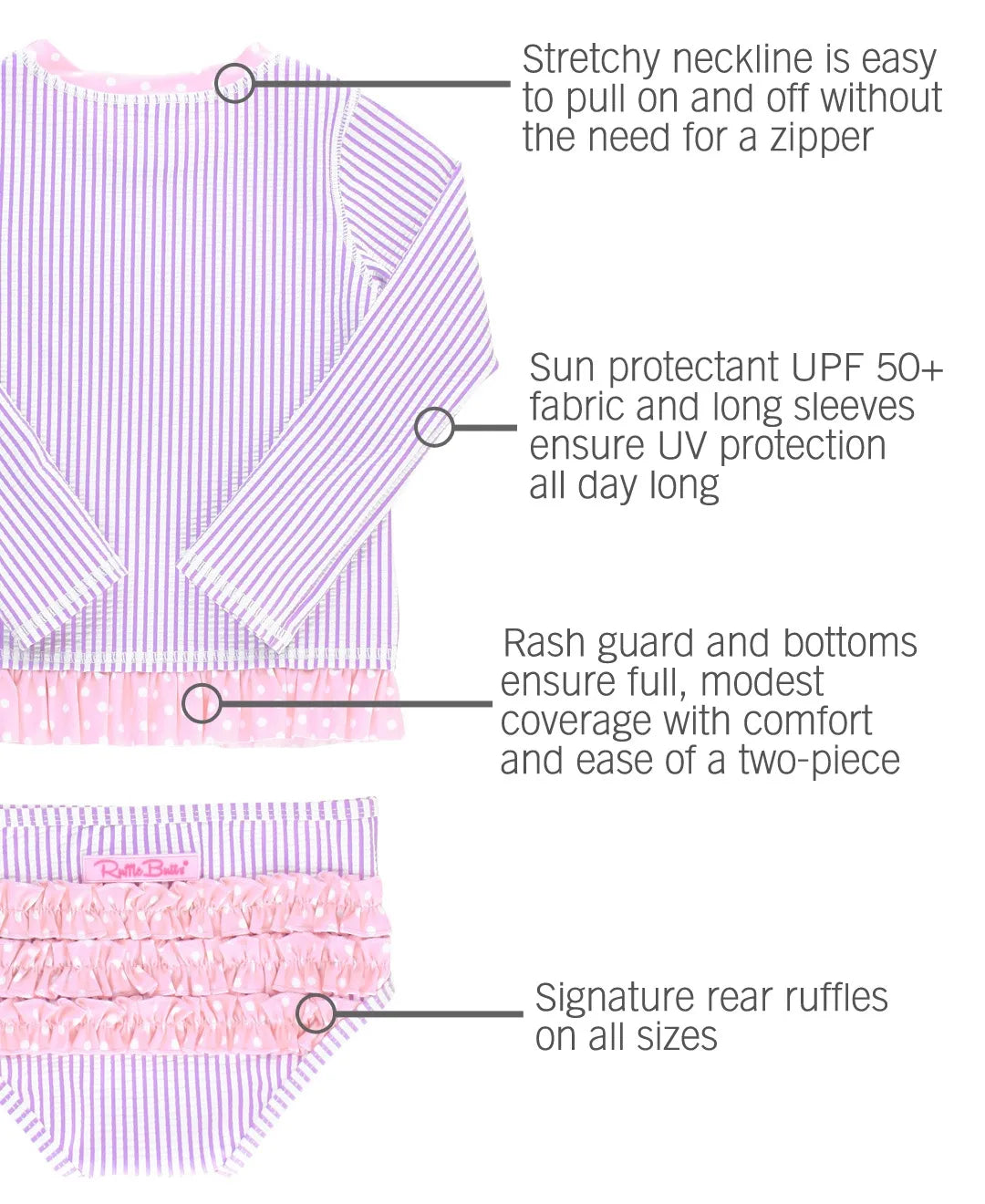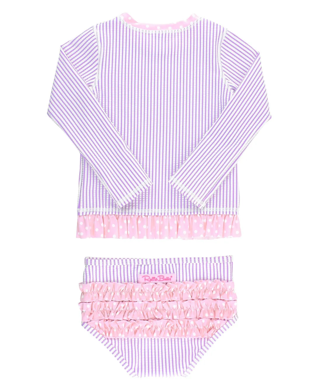 RuffleButts Lilac Seersucker Long Sleeve Rash Guard Bikini