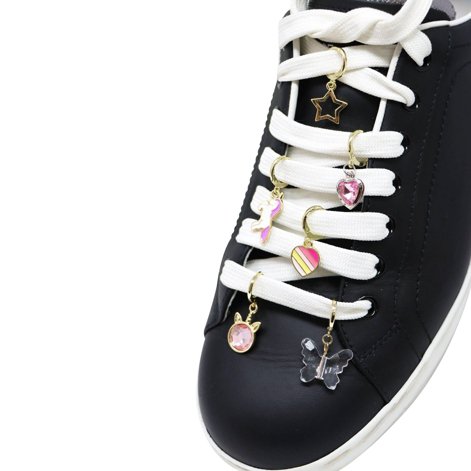 These Magical Unicorn 6-pack Charm Sets features 6 beautifully crafted unique charms including a unicorn, butterfly, gold star, gem, and 2 x heart styles. Designed to easily attach to anything, you will be showcasing your individual style in seconds. These multi-use charms are also known to be attached to shoelaces, bags, clothes, or even hair!