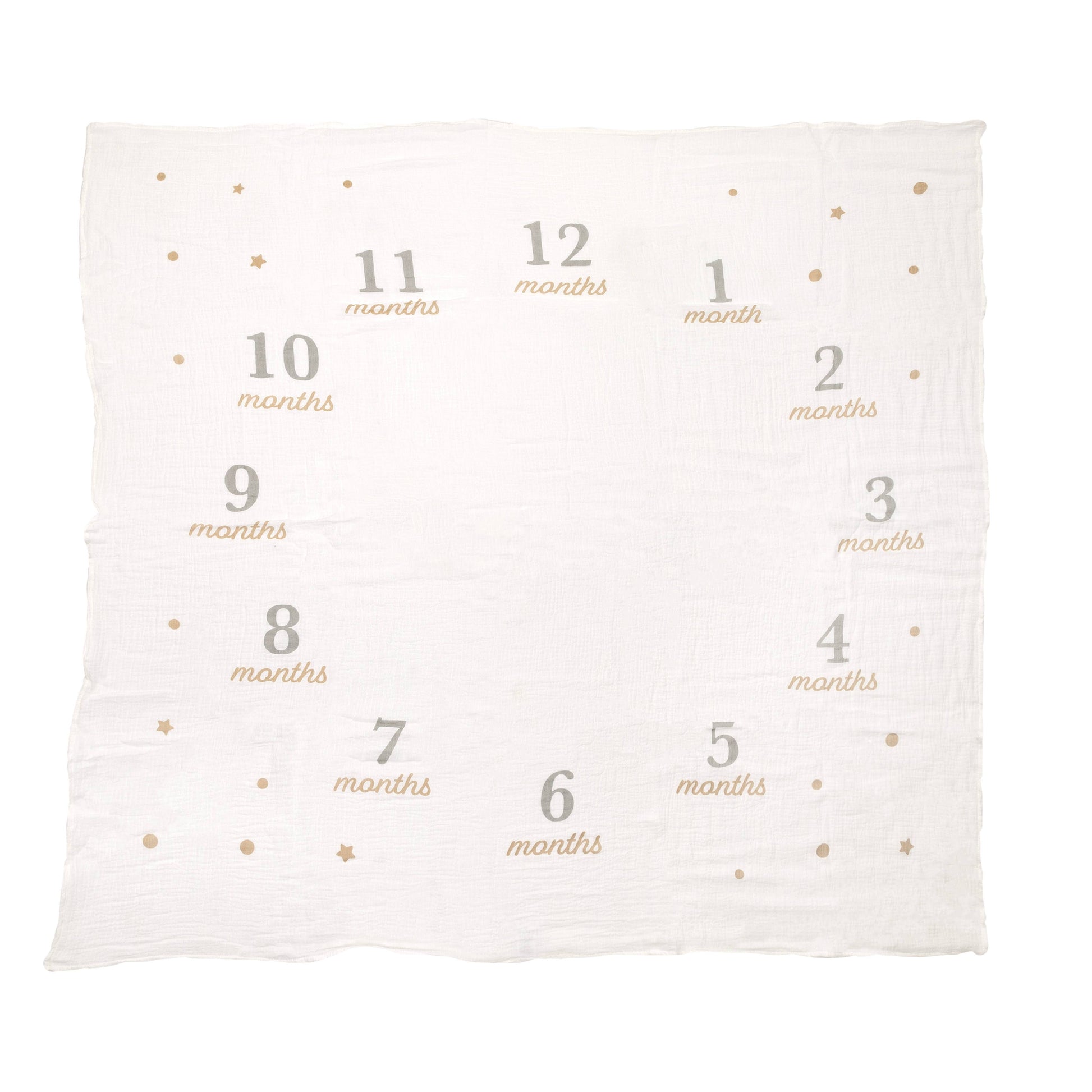 Perfect Photo Prop: Dress up your little one and place them in the center of the blanket, surrounded by the months one through twelve. The blanket's large circle design and adorable beige stars provide a perfect backdrop for organized and cute monthly photos. ·