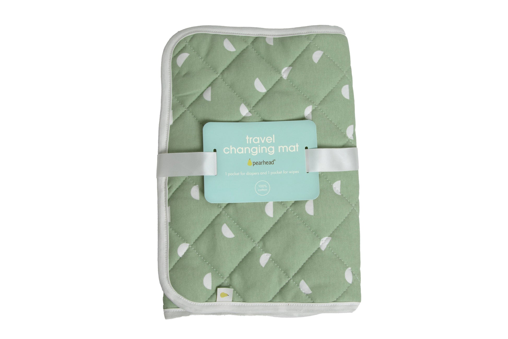 Stylish and Convenient: Pearhead's Sage Green Quilted Changing Mat combines functionality with a touch of style, making diaper changes a breeze wherever you go. The modern sage green color with a geometric quilted pattern adds a touch of elegance to your parenting essentials