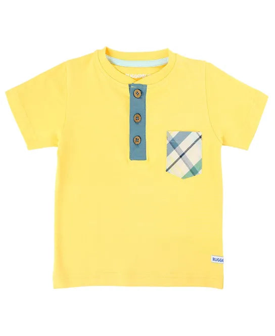 Keep him dapper in this eye catching RuggedButts Mango Pocket Henley Tee. This shirt features a detailed plaid pocket for added cuteness.